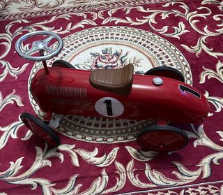 Precioso coche correpasillos vintage estilo años 30. Diseño retro de competición, metálico y muy decorativo. Perfecto para niños o para decoración con estilo clásico. Muy cuidado. Precio negociable