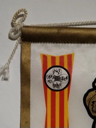 Banderín conmemorativo de Bellpuig, Ciutat Pubilla de la Sardana en 1972. Presenta un diseño tradicional con el escudo de la ciudad y una representación de personas bailando la sardana. - Diseño con escudo y figuras de sardana. - Colores vivos y detalles dorados. - Borde decorativo. -Perfecto estado. Tela tipo lona. Mide 14x19 cms aproximadamente.