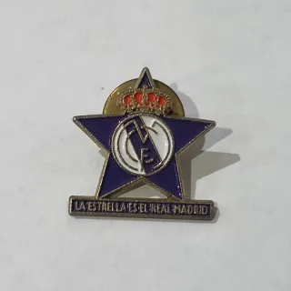 Conjunto de tres pines coleccionables del Real Madrid. Hago Envios. - Pin con forma de mano señalando Los Primeros. - Pin con escudo y llamas Hala Madrid. - Pin con estrella azul y escudo La Estrella es el Real Madrid.