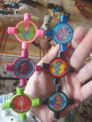 Lote Colección de tazos magnéticos de Dracco con personajes. - Tazo de SQUiK con ardilla. - Tazo de TRENDY SALLY. - Tazo de NAPOPHANT. - Tazo de MAKACO. - Tazo de PRETTY KITTY. - Tazo de JAMES BONES.