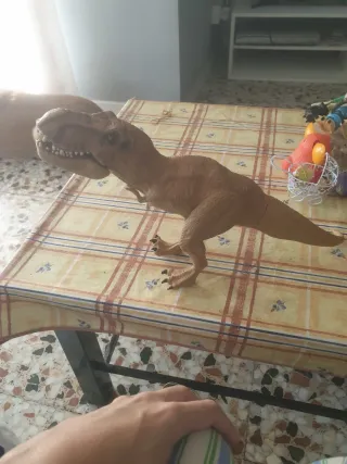 Tiene una marca de rotulador Figura de dinosaurio T-Rex de la marca Hasbro. Un clásico para coleccionistas y amantes de los dinosaurios. - Diseño detallado. - Color marrón.