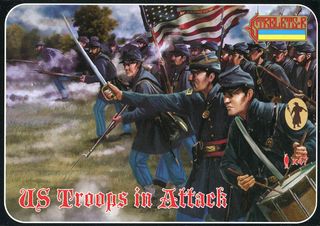 Caja de figuras de la Guerra Civil Americana, US Troops in Attack. - Incluye 47 figuras. - Representa soldados de la Unión en acción. - Detalle de tamborilero y bandera estadounidense. maqueta, escenografia, ww2, ww1, arabes, wargame, figuras, soldaditos, diorama, 1/72, maqueta, miniatura, soldados, guerreros, guerra, Mundial, caballeros, miniaturas,