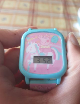 Reloj digital con diseño de Peppa Pig, ideal para los más pequeños. - Correa de color rosa con estampado de Peppa Pig y arcoíris. - Hebilla de color azul. - Esfera cuadrada con detalles de Peppa Pig.