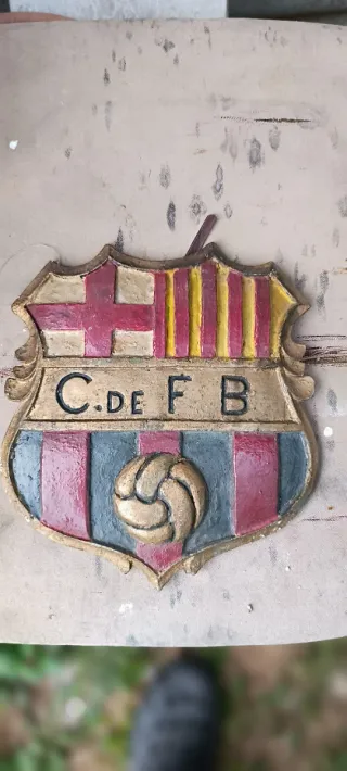 Escudo decorativo del FC Barcelona. - Material: Aluminio. - Diseño con los colores y el balón característicos.