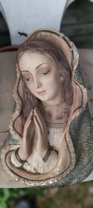 Estatua decorativa de una virgen en actitud de oración. Ideal para añadir un toque de serenidad a cualquier espacio. - Figura con detalles pintados a mano. - Diseño clásico y emotivo.