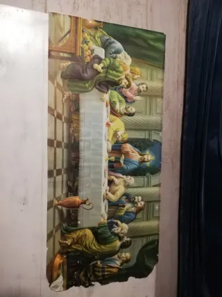 Antigua lámina decorativa que representa la escena de La Última Cena. - Representación artística de la última cena de Jesús. - Diseño clásico y detallado.
