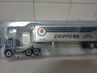 Réplica detallada de un camión Americano White 740 a escala 1:43. Precio no negociable - Modelo: Chippewa Motor Freight Inc. - Escala: 1:43 - Diseño: Camión con remolque plateado y detalles en azul.