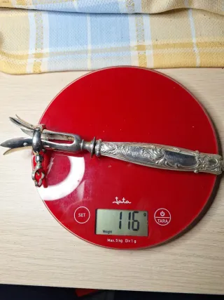 Este es un mango de cordero de plata. - Con sello minerva - Material: Plata y metal - Peso: 116 g