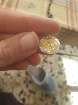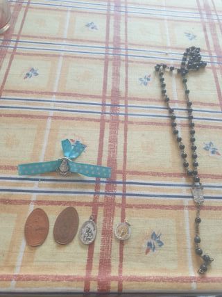 Lote de medallas, monedas y rosario