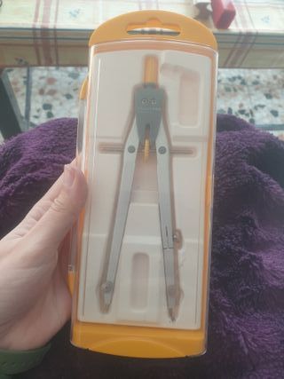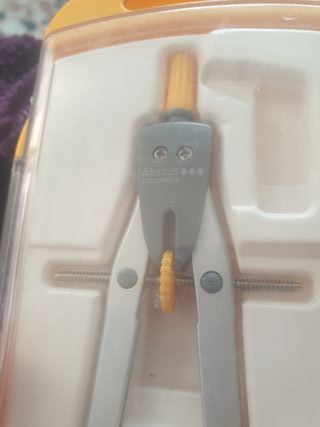 Le faltan algunos complementos Compás de precisión de la marca Abacus, ideal para trabajos de dibujo técnico y geometría. - Cuerpo metálico plateado. - Detalle en color gris y amarillo. - Incluye estuche protector.