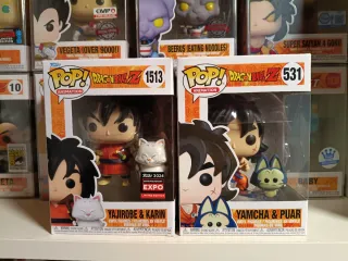 Pack de dos figuras Funko Pop! de Dragon Ball Z. - Funko Pop! 1513: Yajirobe & Karin. - Funko Pop! 531: Yamcha & Puar.