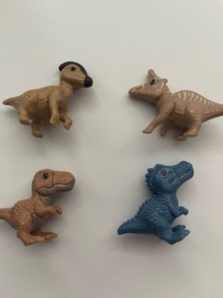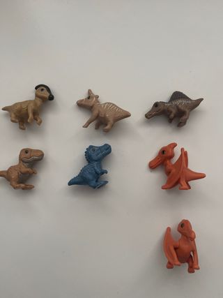 Conjunto de figuras de dinosaurios de huevos Kinder Sorpresa. - Incluye 7 figuras de dinosaurios JUNTOS - Variedad de especies y colores. - Ideal para coleccionistas o juego infantil.