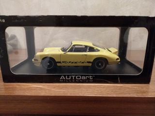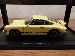 Réplica detallada del Porsche 911 Carrera RS 2.7. - Modelo a escala de Autoart. - Color amarillo. - Diseño clásico de los años 70.