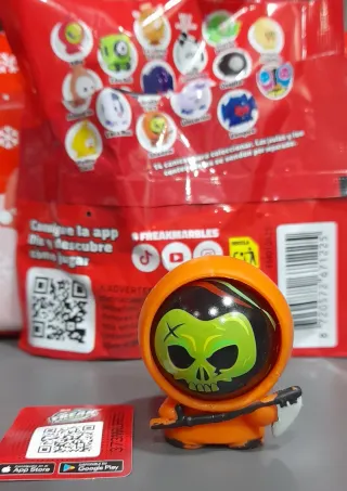 Figura coleccionable de canica tipo Grim Reaper. - Diseño de calavera con capucha naranja. Shadow. - Incluye tarjeta.nueva solo abierto para ver. - Parte de la colección Freak Marbles.dia.