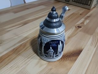 Jarra de cerveza con diseño de Praga. Para su uso o decoración. - Detalle de edificios emblemáticos de la ciudad. - Tapa metálica con asa.