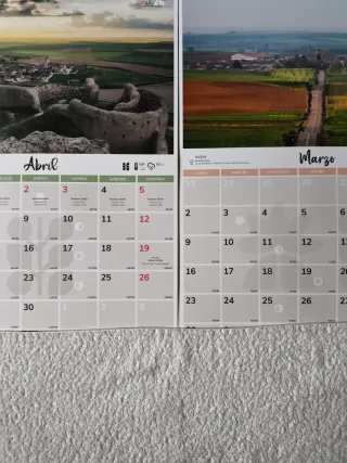 Dos calendarios de pared grandes para colgar durante el año 2026. Medidas: 49 x 34 - Cada mes presenta una imagen diferente, hoja mensual, contiene lunas, festivos nacionales, cuadros diarios para anotaciones. Precio por las 2 unidades: 14 € Hago envíos.
