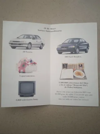 Catálogo promocional del Banco Bilbao Vizcaya, antiguo, por la Celebracion del 3er aniversario de El Libretón BBV con premios como televisores Sony, colección de cintas VHS de cocina, Toyota 20, un Ford Mondeo o apartamentos, está en buen estado y es difícil de encontrar, envio disponible!