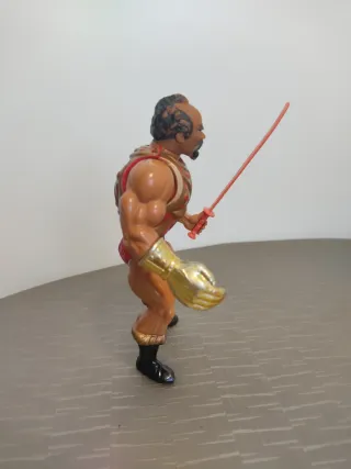Figura de acción de Jitsu de Masters of the Universe de los años 80. Ideal para coleccionistas. - Armadura original. - Movimiento de cadera original. - Incluye espada. - Puño dorado con movimiento. Mattel. 1983 Hong Kong.