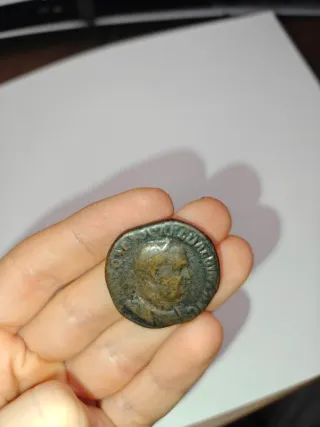 Un RARÍSIMO sestercio de Emiliano / Aemilianus. Gran y rara pieza de colección. Peso: 16.83 g Diametro: 30.00 mm Leyenda: IMP CAES AEMILIANVS P F AVG Leyenda: P M TR P I P P S C Reverso Aemiliano, con atuendo militar, de pie, a la izquierda, ofreciendo sacrificios con una pátera sostenida con la mano derecha sobre un trípode y sosteniendo una lanza con la mano izquierda; entre Aemiliano y el trípode, un estandarte. Se incluye factura de compra previa si se solicita.