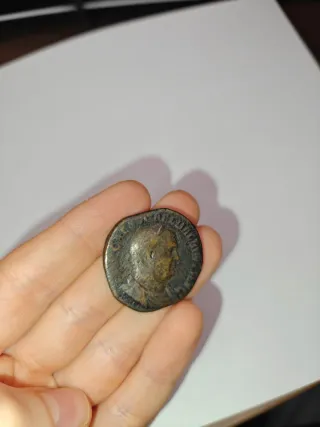 Un sestercio de Balbino. Una pieza muy rara tanto por el emperador como por el tipo de reverso. Peso 18 gramos IMPERIO ROMANO. BALBINO. Sestercio Roma año 238. A/ Busto laureado, drapeado y acorazado a der.; IMP CAES D CAEL BALBINVS AVG. R/ Concordia sentada a izq. con pátera y doble cornucopia; CONCORDIA AVGG (SC). RIC-22. Muy escasa.
