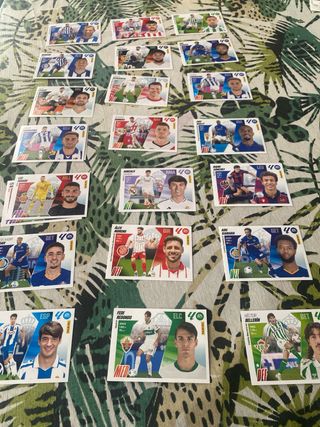 Colección de cromos de fútbol Panini de la temporada 25-26. Incluye varios jugadores. - Robert navarro (ATH) - Joan García (BAR) - Trent Alexander-Arnold (RMA) - Rodri Riquelme (BET) - Álvaro Valles (BET) - Gabriel Soais (SEV) - Vitor Reis (GIR) - Santiago Mouriño (VIL) - Thomas Lemar (GIR) - Adria Pedrosa (ELC) - Renato Veiga (VIL) - Álvaro Carreras (RMA) cada uno a 0,50€ lote : 4€