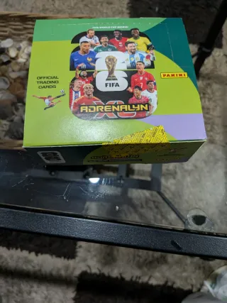 Caja de cromos Panini Adrenalyn para el Mundial FIFA 2026. Caja completa precintada con 24 sobres - Contiene cartas oficiales de trading. - Diseño con jugadores de fútbol. - Sello de calidad Panini.