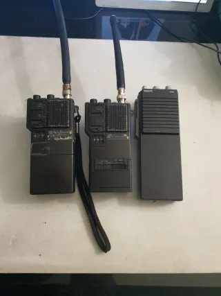 Conjunto de tres walkie talkies vintage, dos de la marca Standard y otro de Philips no se si funcionan no se han probado ideal para coleccionistas - Walkie talkie Standard con antena. - Walkie talkie Philips con antena.
