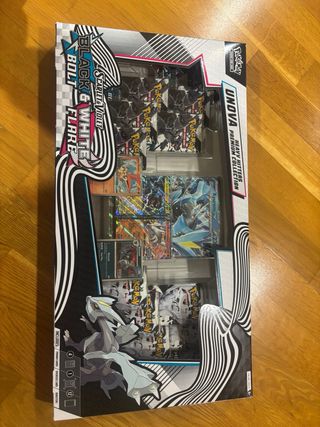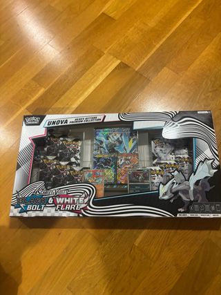 Vendo Pokémon Unova Heavy Hitters Premium Collection completamente nueva y sin abrir. Ideal para coleccionistas o para abrir sobres. Contenido de la caja: • 2 cartas promo Zekrom ex y Reshiram ex • 2 cartas promo Victini y Zoroark • 1 carta promo gigante (oversize) de Kyurem ex • 6 sobres Pokémon TCG Scarlet & Violet Black Bolt • 6 sobres Pokémon TCG Scarlet & Violet White Flare • 1 carta de código para Pokémon TCG Live Total: 12 sobres.