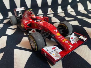 Réplica detallada del coche de Fórmula 1 Ferrari F14. - Diseño icónico en color rojo. - Detalles de patrocinadores y número 7. - Neumáticos de goma. - Pilota por Kimi Raikkonen - Sin caja ENVÍO SÓLO POR INPOST