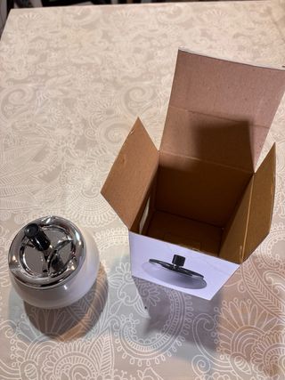 Elegante cenicero de estilo vintage con un diseño clásico. - Base blanca brillante. - Detalles cromados. - Mecanismo superior.
