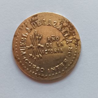 Las monedas de 25 cts y 10 cts de latón del Ayuntamiento de Puebla de Cazalla (Sevilla) son monedas de necesidad acuñadas durante la Guerra Civil española, entre 1936 y 1939, y pertenecen al periodo de la II República. Características principales Metal: Latón. Valor nominal: 25 céntimos y 10 céntimos. Año: Sin fecha, pero acuñadas entre 1936 y 1939. Tamaño: 26 mm de diámetro para la de 25 cts. Canto: Liso. Tirada: Se estima que se acuñaron unas 5000 piezas de 25 cts y 1500 de 10 cts. Estas monedas son muy apreciadas por coleccionistas