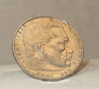 País Alemania - Tercer Reich Período Alemania Nazi (Tercer Reich) 1933 - 1945 Moneda Marco Imperial alemán Tipo de monedas Monedas en circulación Denominación 2 reichsmark Valor fusión 8 XAGg x 0,625 x 1,95= 9,75 Canto Grabado GEMEINNUTZ GEHT VOR EIGENNUTZ' Forma Redonda Alineación Medalla (0°) Aleación Plata 0.625Peso (g) 8 Diámetro (mm)25 Grosor (mm)2 Número KM# 93 Anverso Escudo Símbolos Descripción Águila (heráldica) con Esvástica Leyenda DEUTSCHES REICH Reichs Mark Reverso Jefe de Estado Descripción Paul von Hindenburg (Presidente de Alemania)