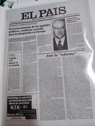 Edición especial del periódico El País conmemorando el número 10.000. - Portada con obra artística. - Fecha: Lunes 19 de Octubre de 2004. - Incluye firma y fecha manuscrita.