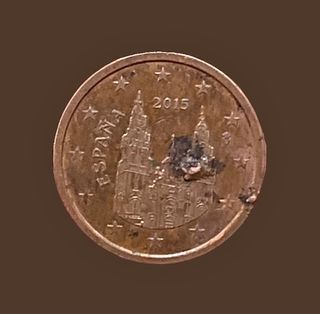 Moneda de España 🇪🇸 con error de acuñación 1 céntimo de 2015 Moneda con error de acuñación por exceso de metal en anverso, sobre la torre derecha de la catedral de Santiago de Compostela Estado: BC+ Rareza: Rara País: España 🇪🇸 Periodo: UE (1999-….) Moneda: euro Año: 2015 Aleación: Tirada: 460 Milln #067