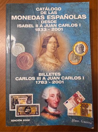 Catálogo de monedas y billetes españoles. - Cubre el periodo de Isabel II a Juan Carlos I. - Incluye monedas de 1833 a 2001. - Incluye billetes de Carlos III a Juan Carlos I de 1783 a 2001. - Edición del año 2002.