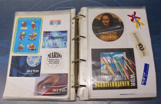 Años 80. Italia (mediaset), Alemania y más. No están pegadas a los folios, llevan un trocito de celo para sujetarlas. Hay 60 fundas en la carpeta. 2,5k con la carpeta. Tenemos más artículos similares y otros completamente diferentes. Si aúnas pedidos ahorrarás en gastos de envío. Véndelo Amazing te ofrece un periodo de dos semanas para su devolución si el artículo no es el mismo que salía reflejado en la descripción o las fotografías. Las fotografías son parte de la descripción. Pertenecen al producto a la venta. Este artículo tiene 5€ de gastos de envío dentro de la península española. El comprador deberá sumarlo al precio p...