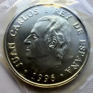 Moneda de 500 pesetas AÑO 1996 procedente de cartucho o bolsa oficial FNMT, monedas SC SIN CIRCULAR UNC. La moneda sería la de las fotografías u otra de idéntica calidad ya que tengo varias a la venta. Número: KM# 924 País: España Período: Rey Juan Carlos I (1975 - 2001) Gobernante: Juan Carlos I Moneda: Peseta española Tipo de monedas: Monedas en circulación Denominación: 500 pesetas Año: 1993 - 2001 Aleación: Bronce de aluminio Canto: Patrón y canto limado Forma: Redonda Alineación: Moneda (180°) Peso (g): 12 Diámetro (mm): 28 Grosor (mm): 2,8