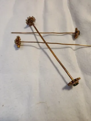 Elegante pincho antiguo decorativo con detalles en dorado y piedras verdes. - Diseño floral. - Ideal para adornos o coleccionismo.
