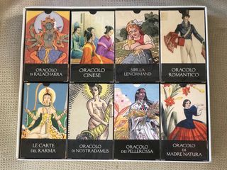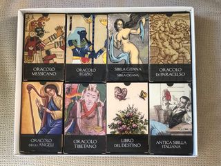 Conjunto de 16 mazos de oráculos de la marca Lo Scarabeo, de Ediciones Orbis. Colección completa sin estrenar. - Oráculo del Kalachakra - Oráculo Chino - Sibilla Lenormand - Oráculo Romantico - Las Cartas del Karma - Oráculo de Nostradamus - Oráculo de las Pieles Rojas - Oráculo de la Madre Naturaleza - Oráculo de los Ángeles - Oráculo Tibetano - Oráculo Libro del Destino - Antigua Sibila Italiana - Oráculo de Paracelso - Sibila Gitana - Oráculo Egipcio - Oráculo Mexicano