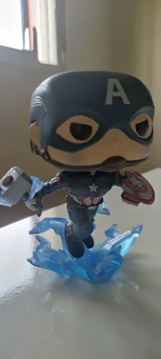 Figura Funko Pop! del Capitán América, número 573. - Diseño inspirado en el personaje. - Base de exhibición temática. - Sin caja. - Precio negociable.