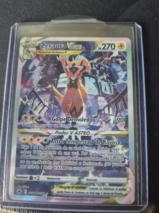 Carta de Pokémon Zeraora VASTRO. - Código de carta: GG43/GG70. - Poder V-ASTRO: Astro Tempestad de Rayos. - Habilidad: Golpe Demoledor. - Regla V-ASTRO: Cuando tu Pokémon V-ASTRO queda Fuera de Combate, tu rival coge 2 cartas de Premio.
