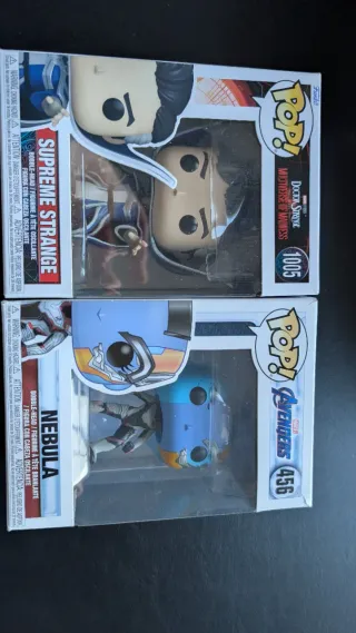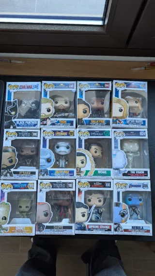 Colección de figuras Funko Pop del universo Marvel. - Black Panther (Civil War 130) - Thor (Ragnarok 240) - Valkyrie (Thor Ragnarok 244) - Captain Marvel (495) - M'Baku (1038) - Ebony Maw (Avengers 290) - She-Hulk (1131) - The Vision (824) - Groot (Guardians of the Galaxy Vol. 2 202) - Okoye (Wakanda Forever 1100) - Supreme Strange (Doctor Strange 1005) - Nebula (Avengers 456)
