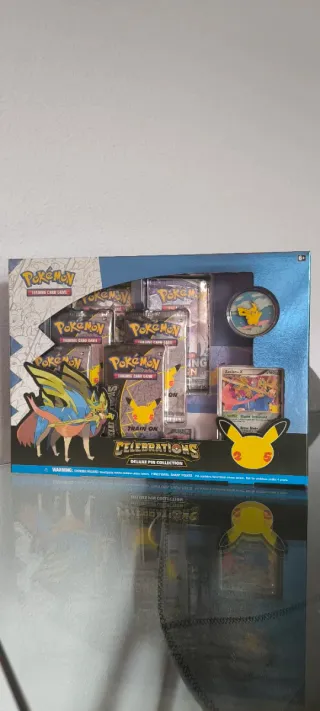 Caja Pokémon Celebrations Deluxe Pin Collection, edición especial 25 aniversario en Inglés ✅ Nuevo y sellado 💎La caja contiene: 1 carta promo Zacian LV.X (foil exclusive) 1 pin collector Pikachu Surfing/Flying (doble cara) 4 boosters Pokémon Celebrations 25th Anniversary 2 boosters de TCG Pokémon (Sword & Shield) Código Pokémon TCG Online de la caja ✅ Estado perfecto, sellado, sin abrir. Marca: The Pokémon Company International Colección: Celebrations 25 aniversario