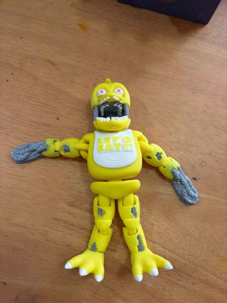 Figura impresa en 3D del personaje de Fnaf. - Diseño detallado. - Color amarillo predominante. - Brazos y piernas articulados.