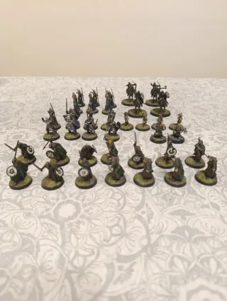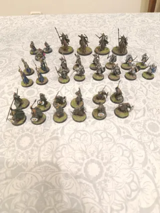 Colección de figuras de miniaturas del Señor de los Anillos (ESDLA). - Figuras de personajes a caballo. - Figuras de personajes a pie. - Variedad de armaduras y armas. - Figuras originales pintadas - Gandalf el blanco a caballo - 26 Guerreros de Gondor - 36 Guerreros de Rohan - 11 Jinetes de Rohan - 14 Guerreros Elfos - 3 Guerreros de Dol Amroth - 4 Arqueros Hobbit - Rey Enano y 4 Guerreros Enanos.