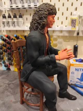 Figura coleccionable del artista Camarón de la Isla. Representa al cantaor con un traje elegante. - Detalles en el traje y accesorios. - Base de asiento incluida.