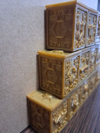 Set de cajas decorativas inspiradas en las armaduras de los Caballeros del Zodiaco. Cada caja presenta un diseño detallado con motivos celestiales y figuras. - Diseño inspirado en la serie. - Acabado dorado. - Ideal para coleccionistas. - Precio por las 12 unidades. Se puede fabricar de forma individual de diferentes tamaños.