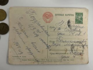 Conjunto de monedas y una postal conmemorativa de la URSS. - Incluye varias monedas de diferentes valores. - Postal con diseño temático de la Unión Soviética y cohetes. - Insignia conmemorativa de la URSS.