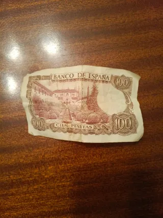 Billete de 100 pesetas del Banco de España, emitido en Madrid el 17 de noviembre de 1970. - Valor: Cien pesetas. - Serie: 7R6931192. - Fecha de emisión: 17 de noviembre de 1970.