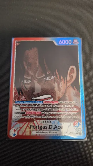 Carta de Portgas D. Ace de One Piece. - Poder: 6000 - Afiliación: Piratas de Barbablanca - Tipo: Líder